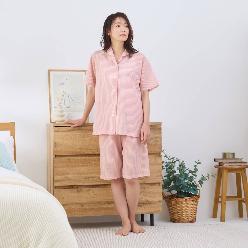 • 【アセドロン】綿混 背中メッシュ 半袖5分丈パンツ パジャマ TL1006 ピンク