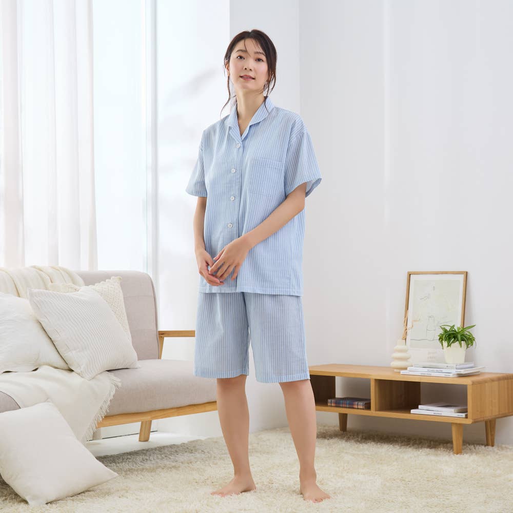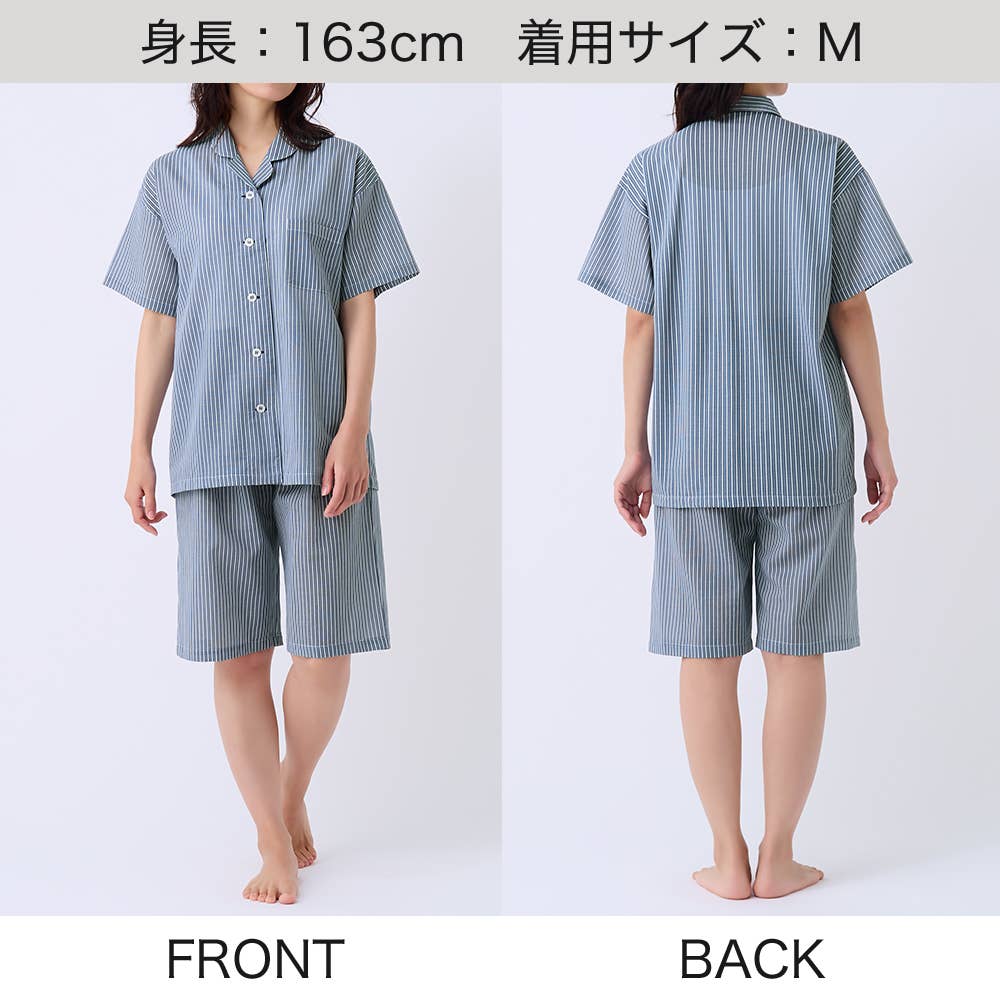【アセドロン】綿混 背中メッシュ 半袖5分丈パンツ パジャマ
