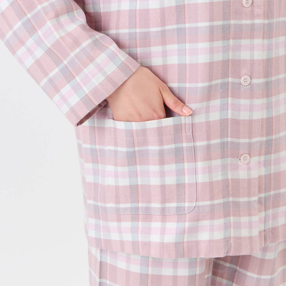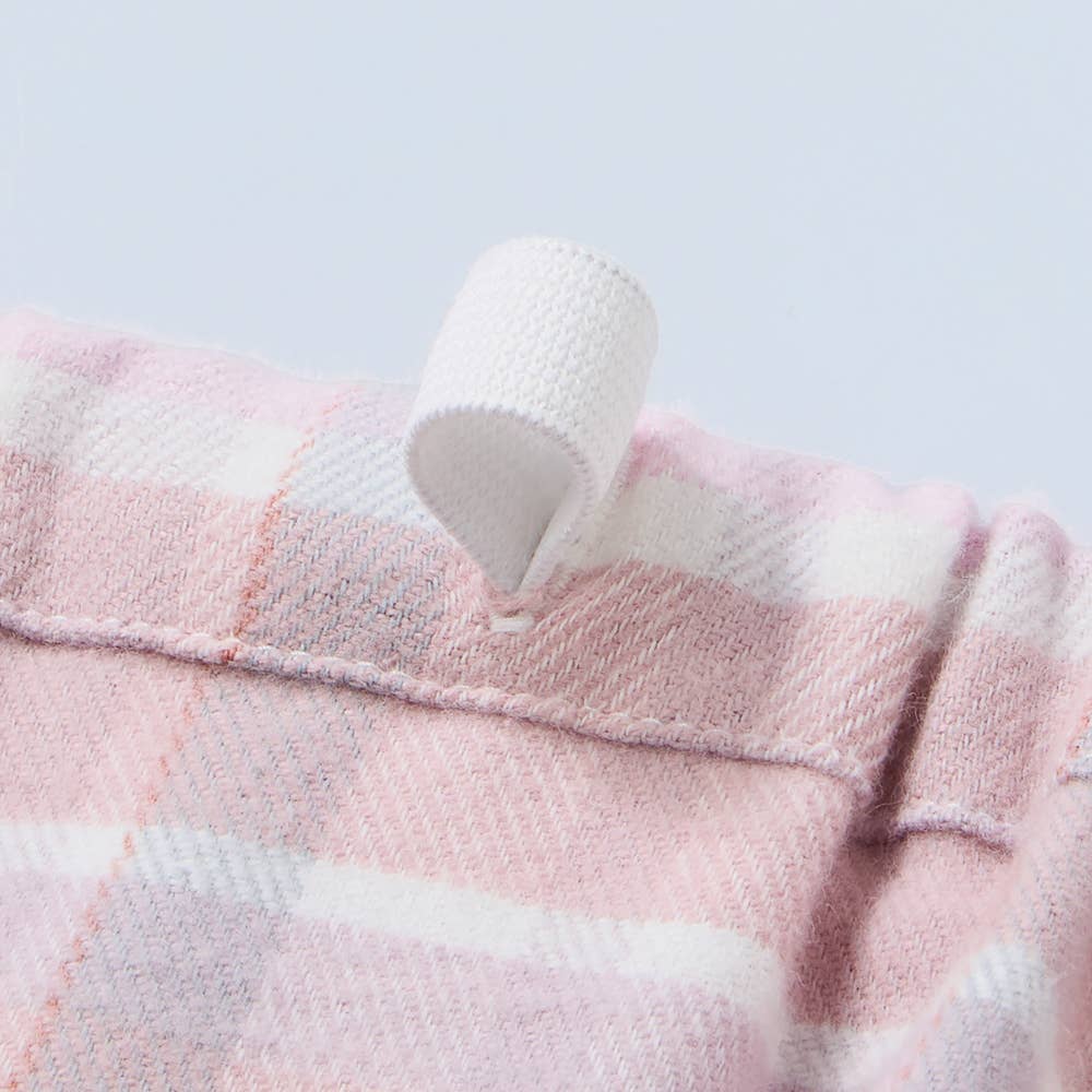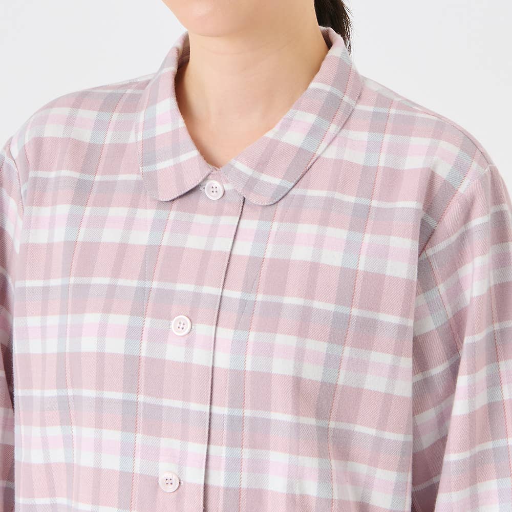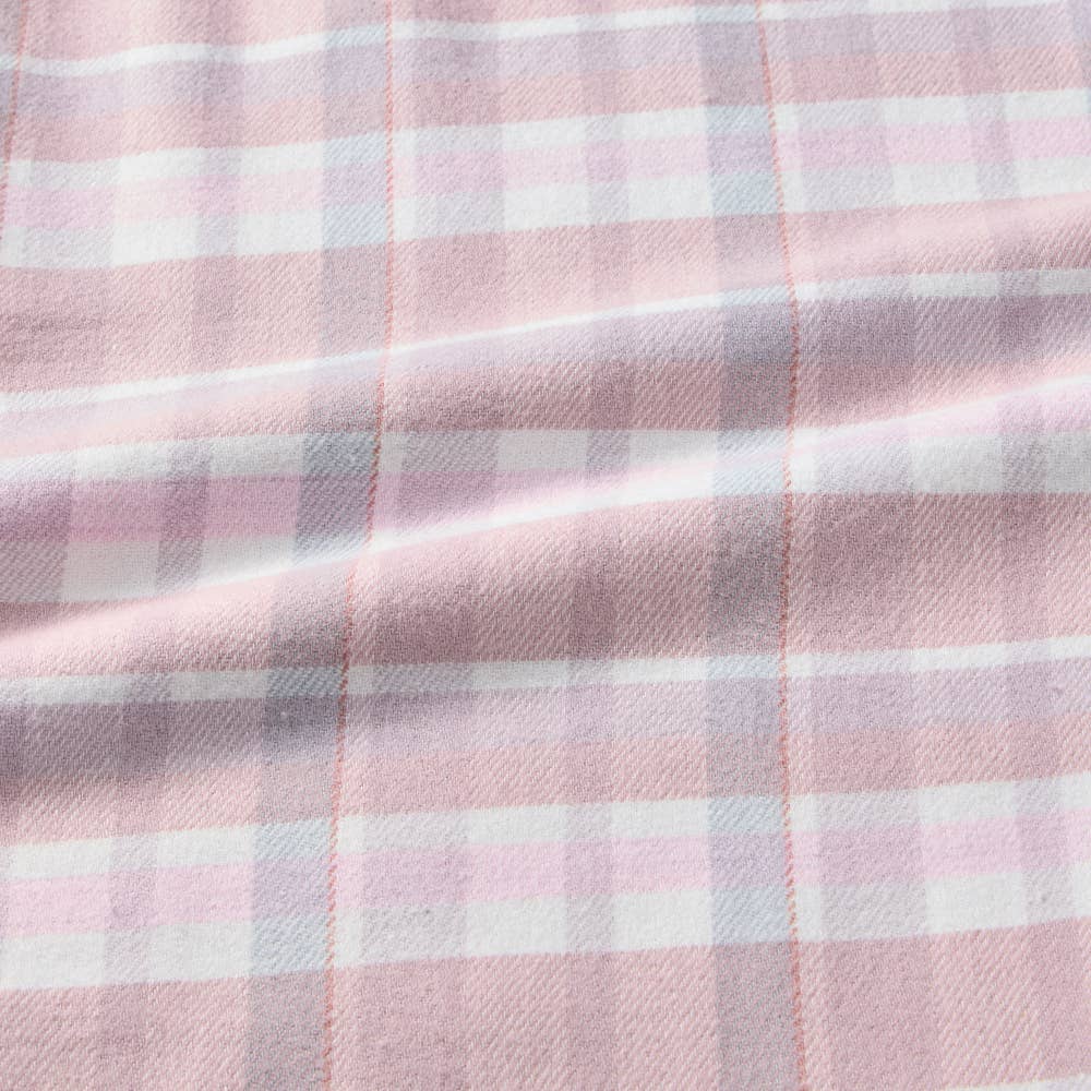 ・本体素材は、柔らかい風合いの綿100%ネル起毛になります。こちらのネル起毛は、適度な厚みの布帛素材に表側を軽く、内側【肌側】を深く起毛をかけているので、肌ざわりも柔らかく秋冬に暖かな印象の素材です。