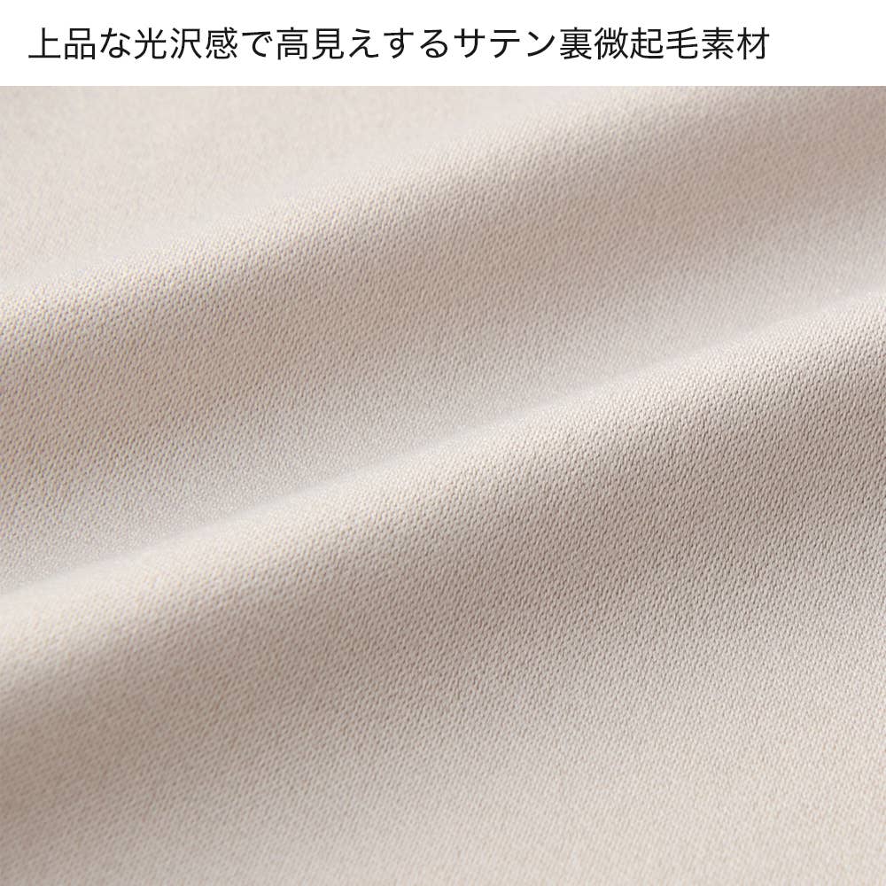 サテン生地で上品さアップ&深めのポケットで小物もしっかり入れられます。裏微起毛素材で、着た瞬間から暖かく、ふんわり気持ちいい。