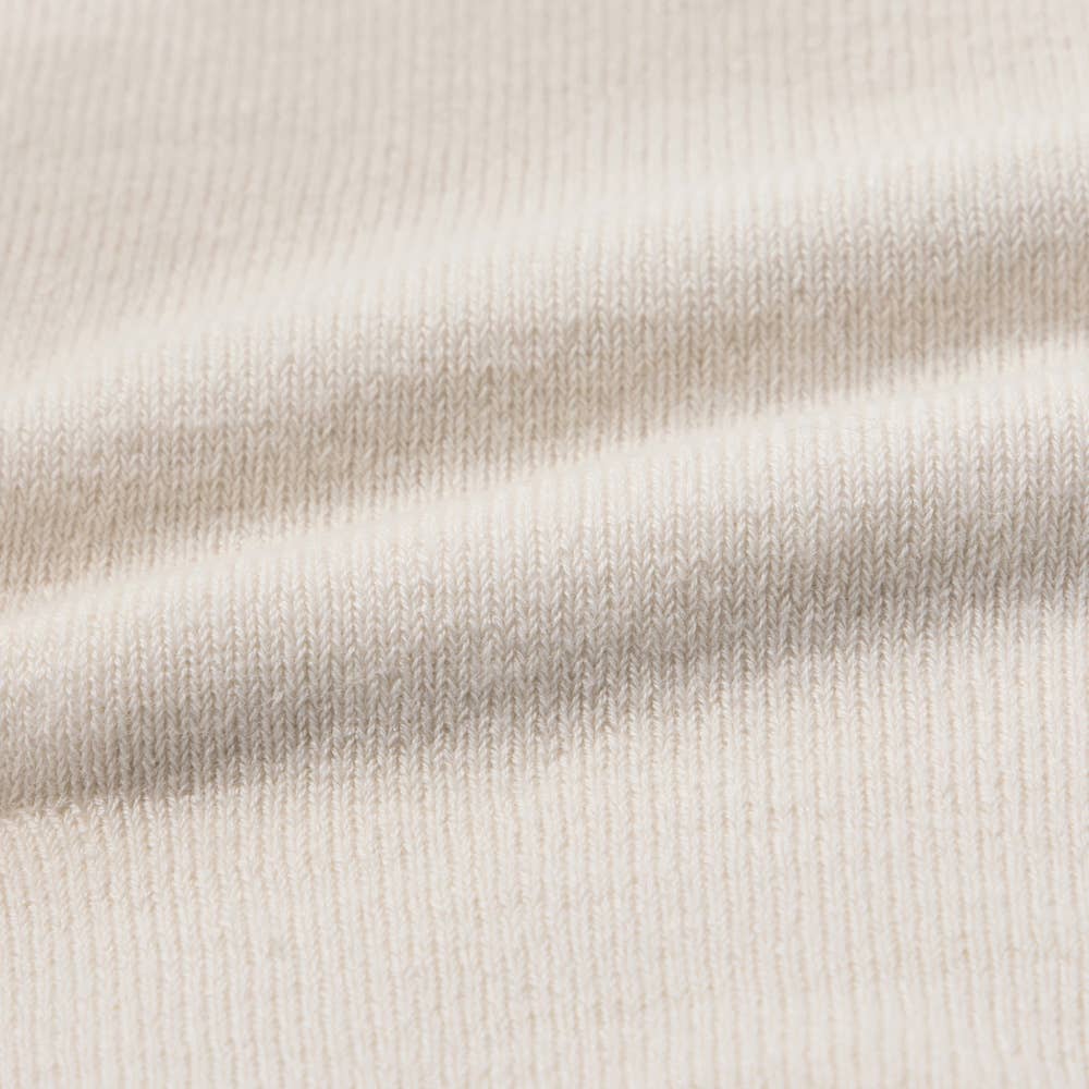 伸縮性にも優れているので、幅広い体形の方に対応し、素肌に心地よくフィット。縫い目なしで編めるホールガーメント®で編み立てているので、縫い目がなく肌当たりやさしい。さらに軽くてあたたかく、トップスにひびきにくい薄さも魅力的で、年間を通して着たくなるアイテム。