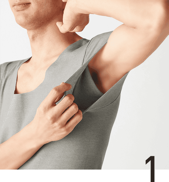 脇部分には大きめの汗取りパッド付き。汗をしっかりキャッチして汗ジミを防いでくれます。夏場はもちろん、うっかり汗ばむ冬の暖房下にも。