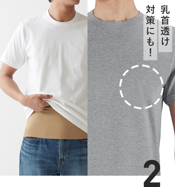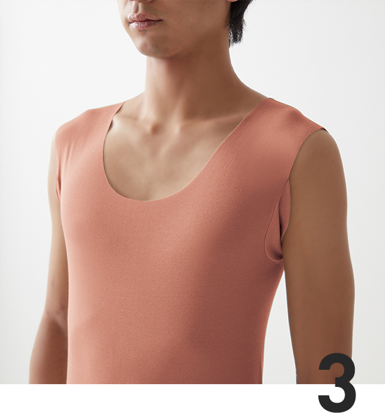 肌馴染みの良いベージュカラーを複数色展開。さらに、生地が滑らかで、乳首のぽっこりも抑えられます。白いTシャツやワイシャツの下に着ても、存在が気になりません。