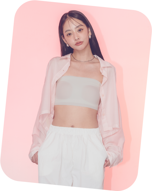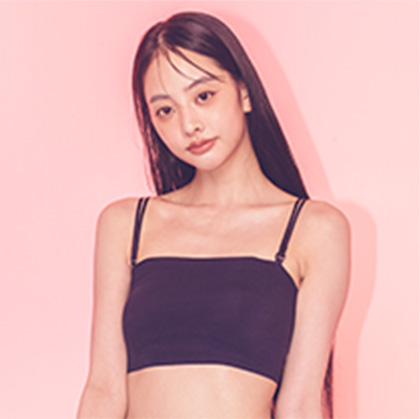 胸元や背中があいたクロップド丈のトップスにはブラレットがおすすめ。ダブルストラップの肩紐は見せてもOK。