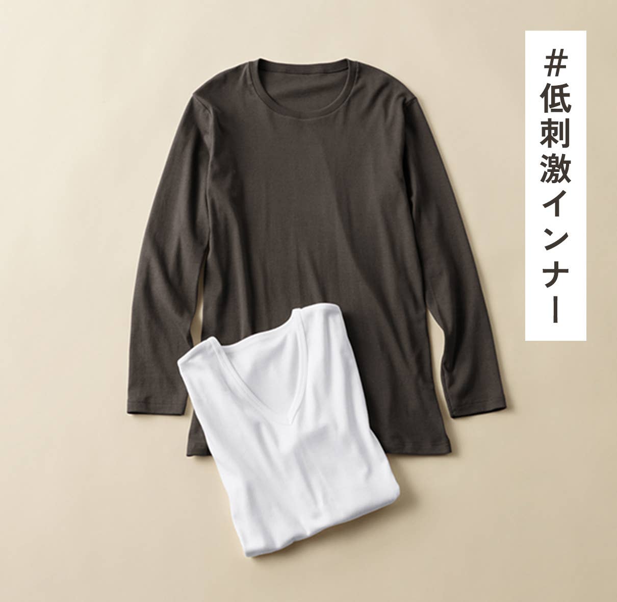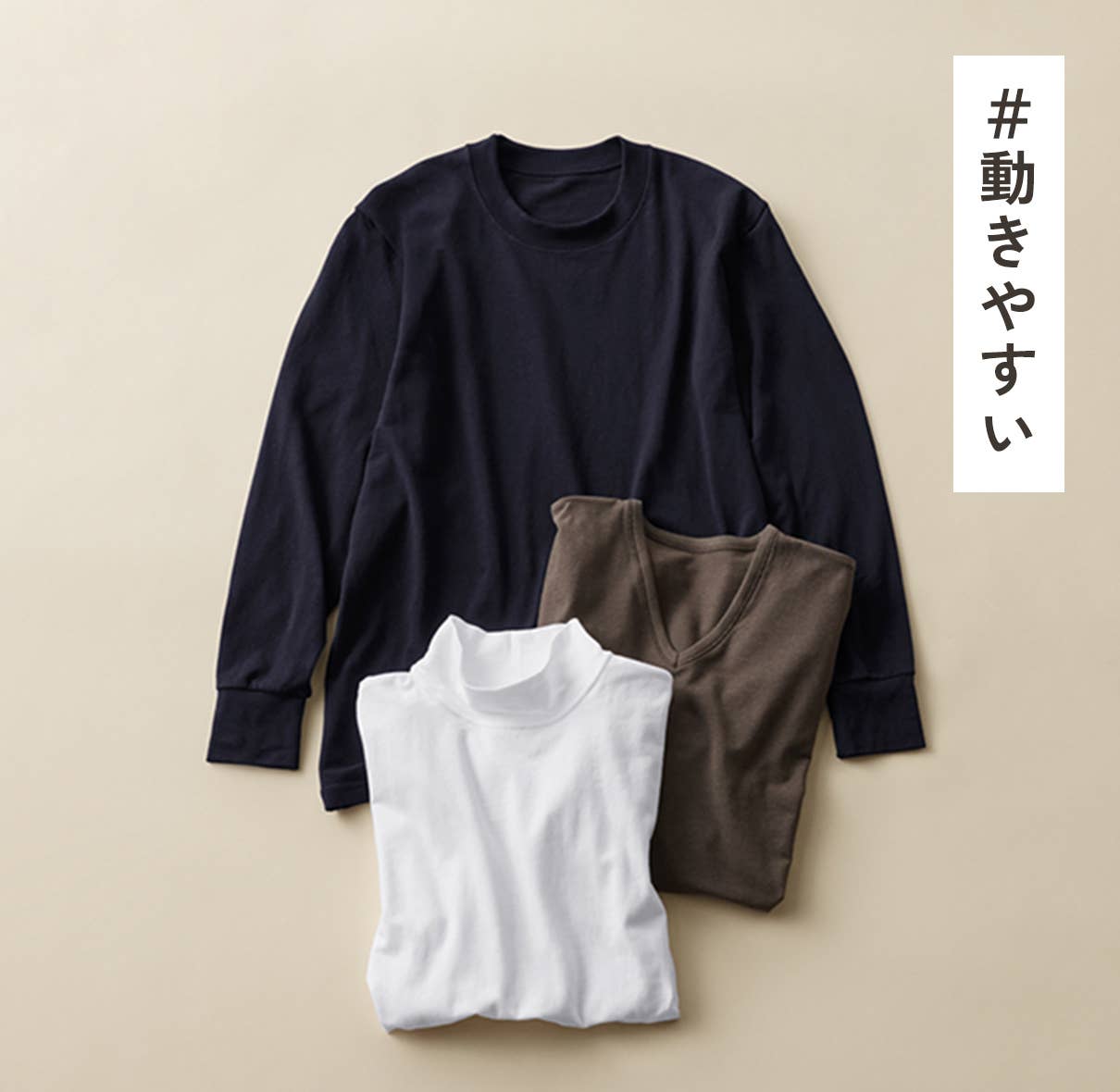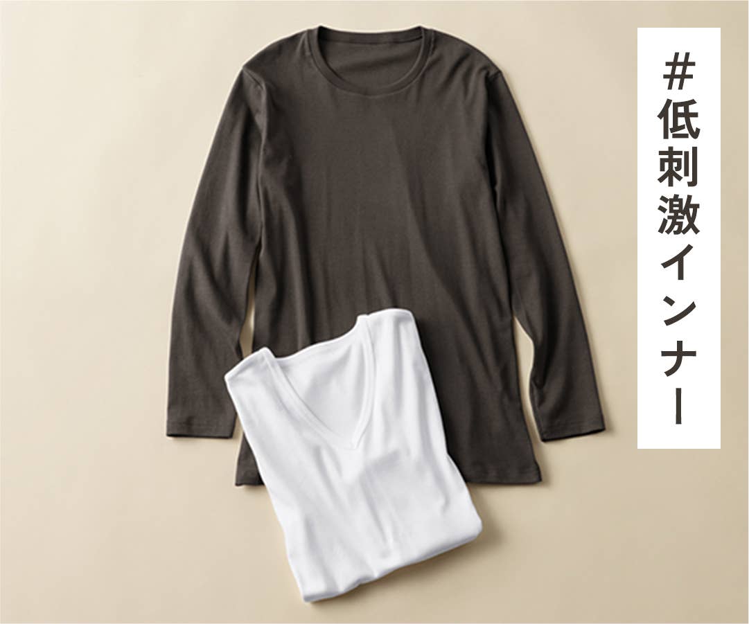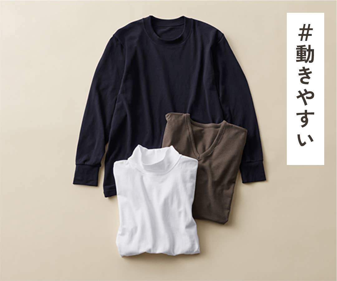 化学繊維のヒートインナーが苦手な方にもおすすめしたいやさしい綿の肌触り。普段使いにぴったりなカジュアルデザインで、デイリーユースに最適なあたたか低刺激インナーです。