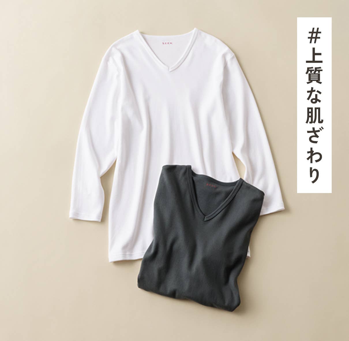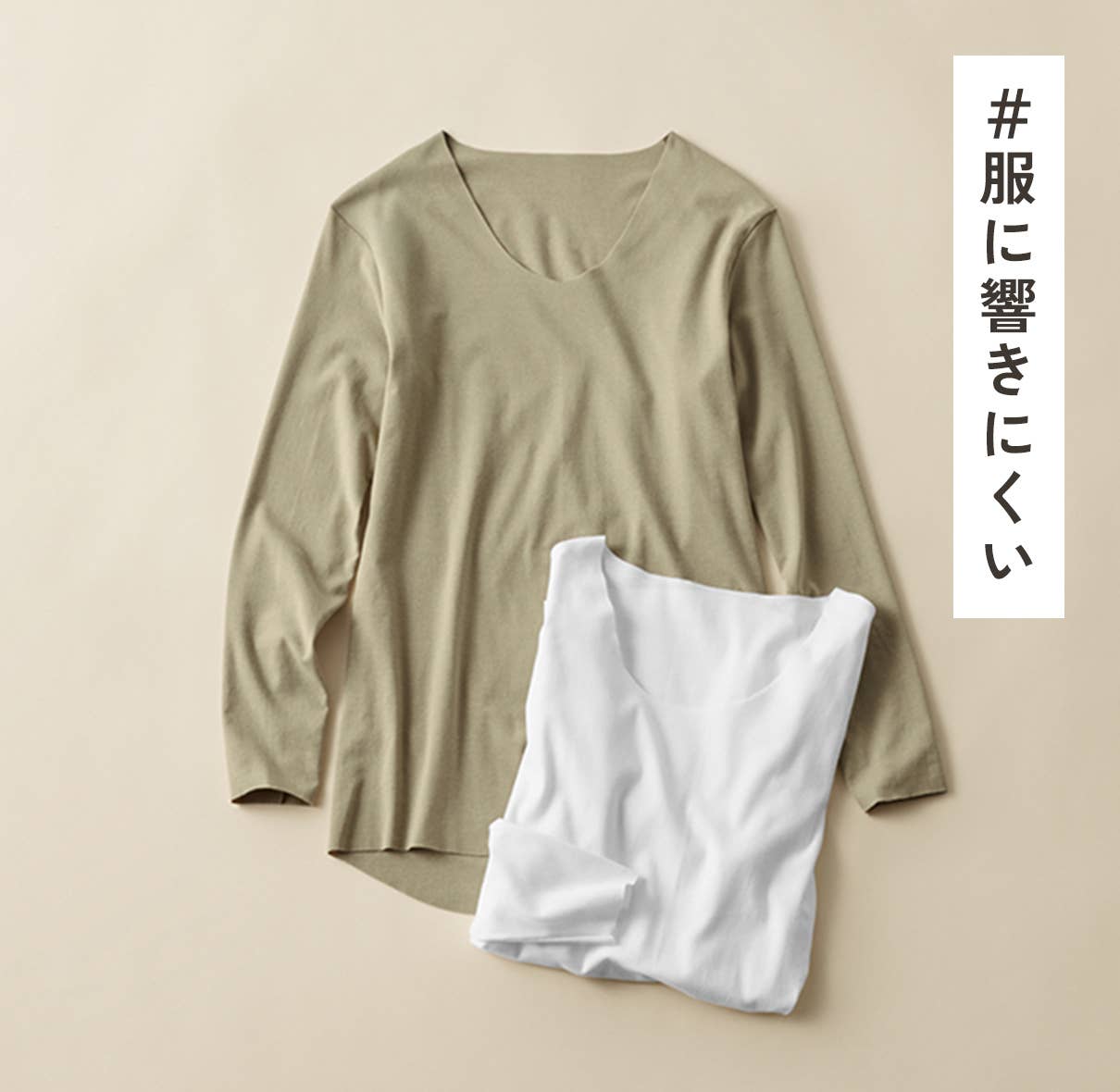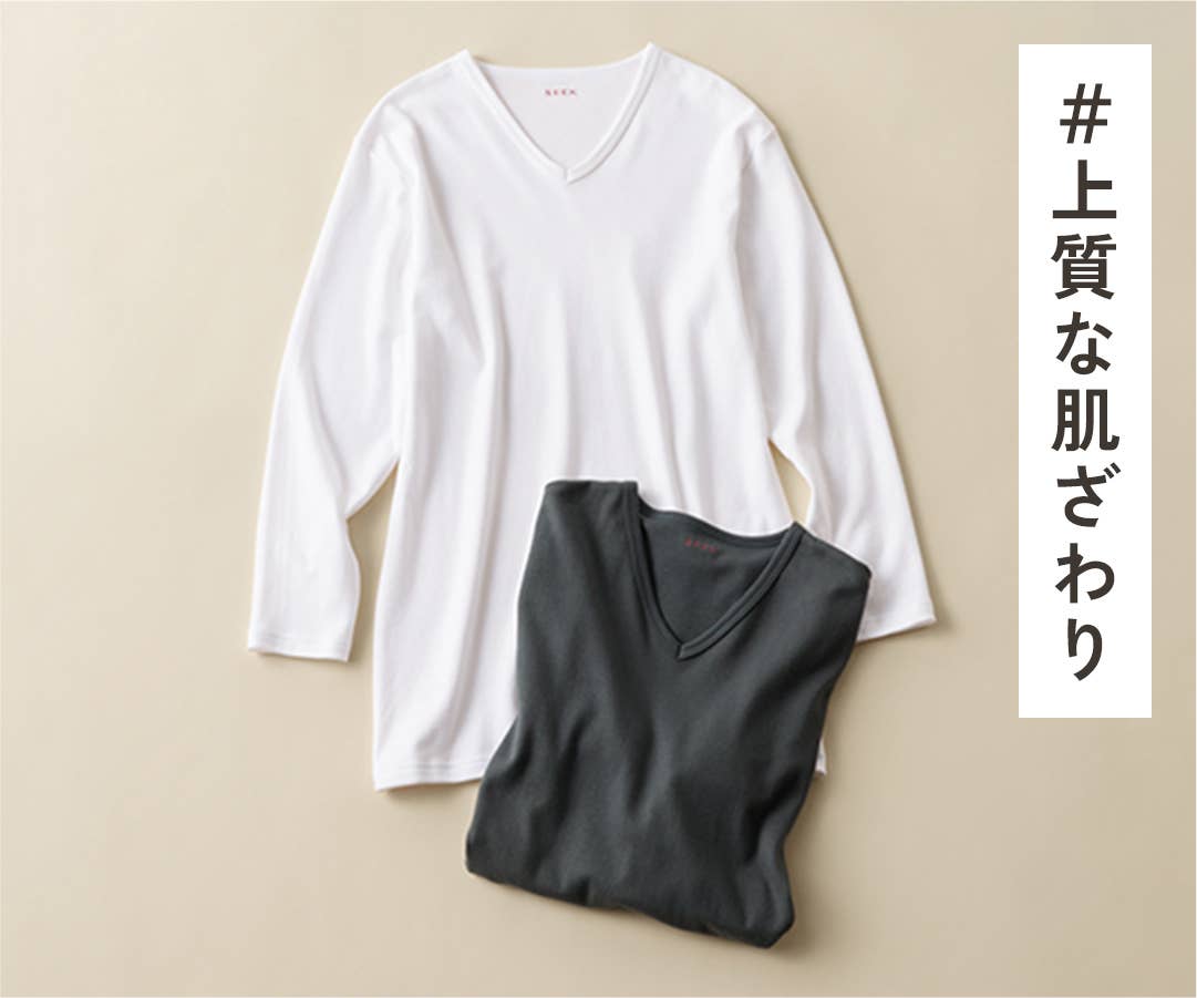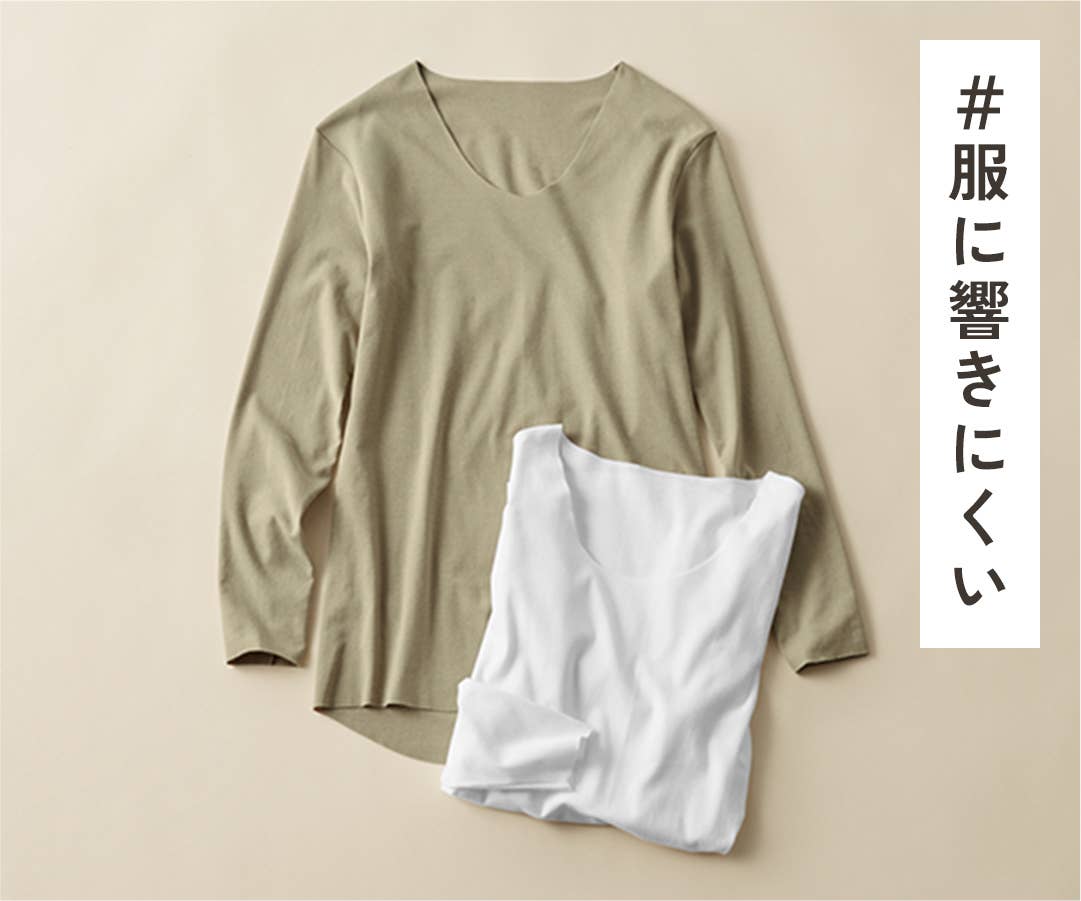 きりっぱなしの軽やかな生地は、アウターに響きにくく、自然なフィット感。寒い時期のスマートな着こなしを叶えるインナーです。