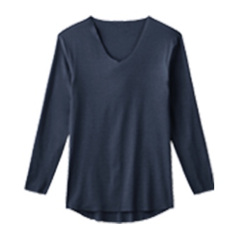 不易打鼾襟ぐり、袖、裾はきりっぱなし仕様のため、ラインがひびきにくく、すっきり着られます。