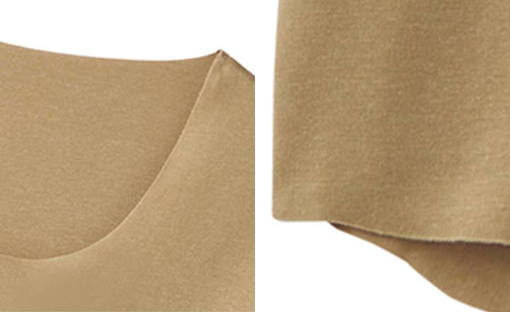 不易打鼾襟ぐり、袖、裾はきりっぱなし仕様のため、ラインがひびきにくく、すっきり着られます。