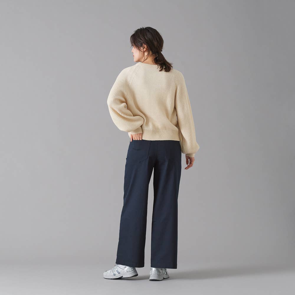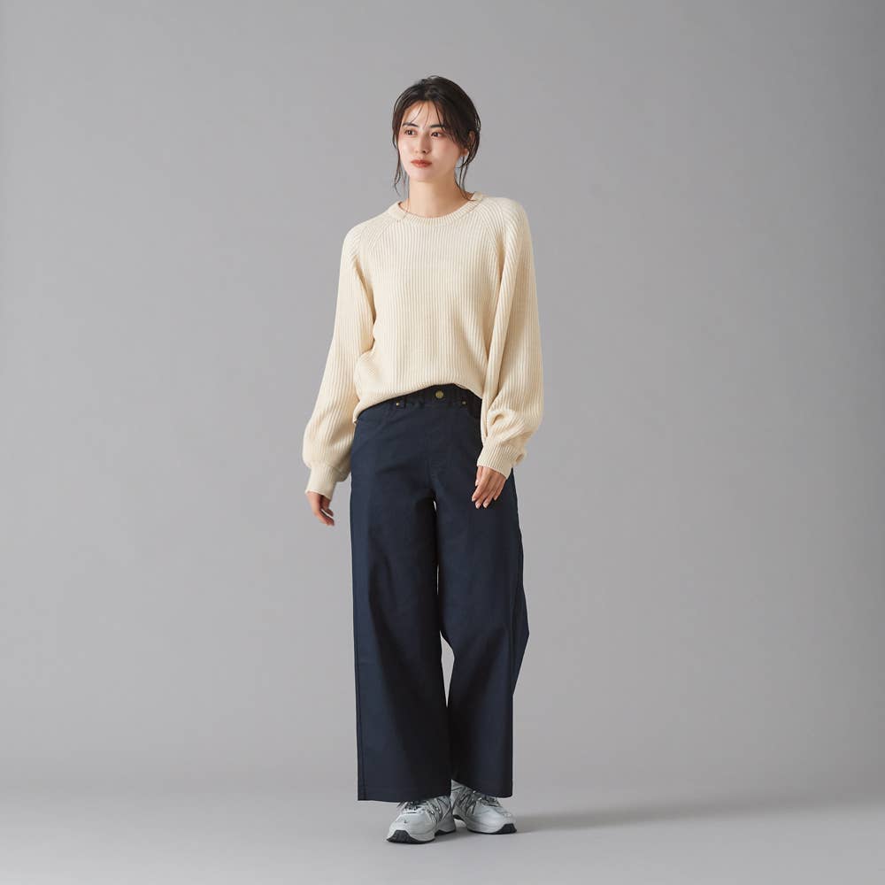 綿混素材なのに、よく伸びるので、屈伸したり、自転車に乗っても、窮屈感がなく快適!ウエストゴムで、お腹もラクです。綿混素材で、肌あたりはやさしく、ハリのあるしっかりとした生地なので、おうちでも、オフィスでも、一年中快適に着用いただけます。